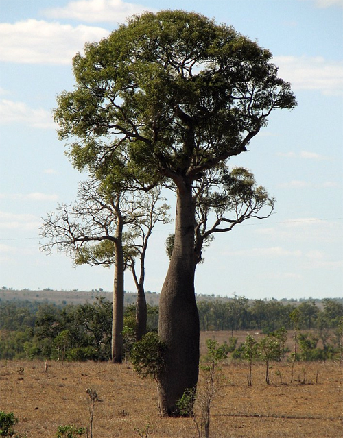 Накапливает воду и квинслендское бутылочное дерево. Оно по своей форме действительно похоже на бутылку, только многокамерную. В нижней части ствола между корой и древесиной находится отделение, вмещающее значительное количество воды. Это очень важно для путешественников, так как бутылочные деревья растут только в самых сухих областях Австралии, а в дождевых тропических лесах не встречаются. Второй резервуар помещается в средней части дерева. В нем содержится большое количество сладковатого сгустившегося в желе сока, очень полезного и питательного.