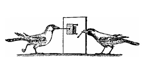После того как была напечатана работа про изобретательных соек, врановыми занялись двое американских ученых: Р. Пауэлл и Т. Келли. Если сойки сами нашли повод проявить свою сообразительность, то воронам специально создали условия для ее проявления.